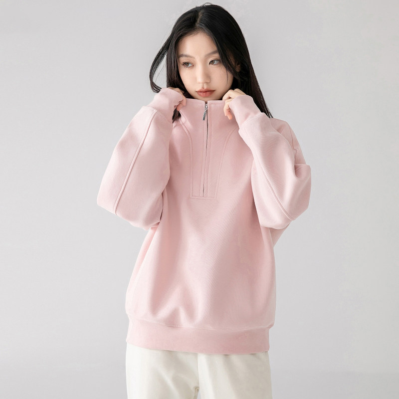 DEEP 25春套头纯色显瘦保暖外套 SEARCH空气层半拉链卫衣男女同款
