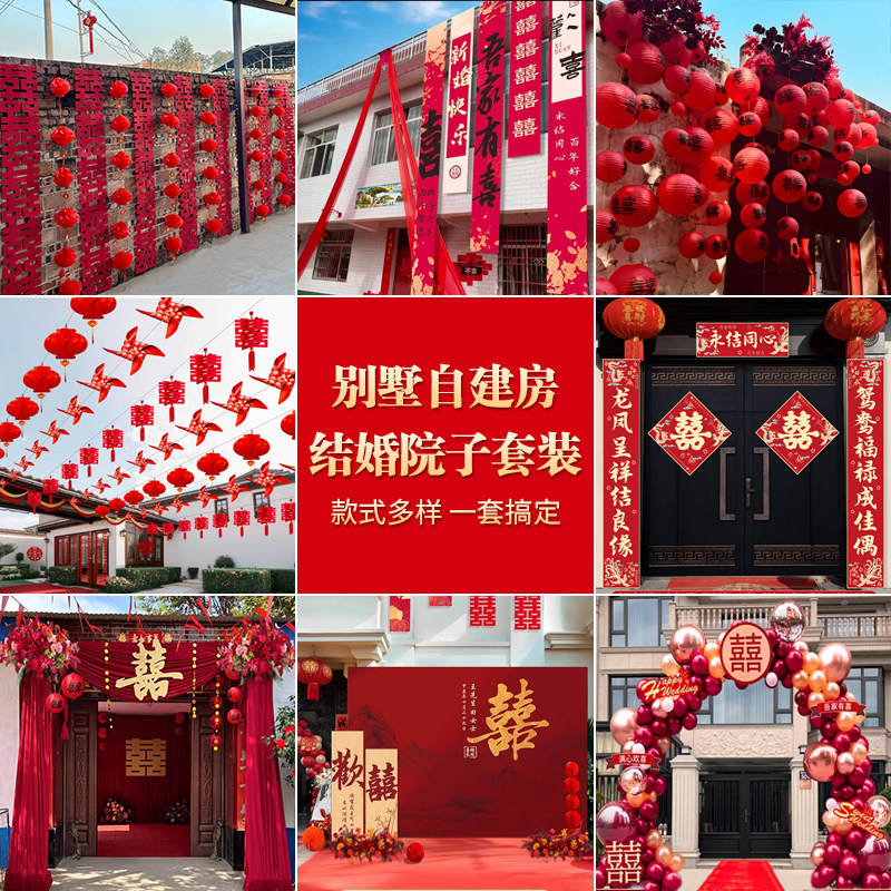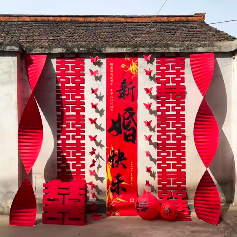 饰卧室婚礼农村新房 客厅结婚屋顶吊顶拉花装 婚房布置套装 2026新款