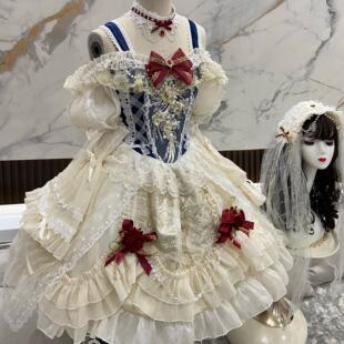 逗酱原创Lolita洋装 花嫁华丽精致洛丽塔连衣裙 白雪姬晚宴露肩短袖