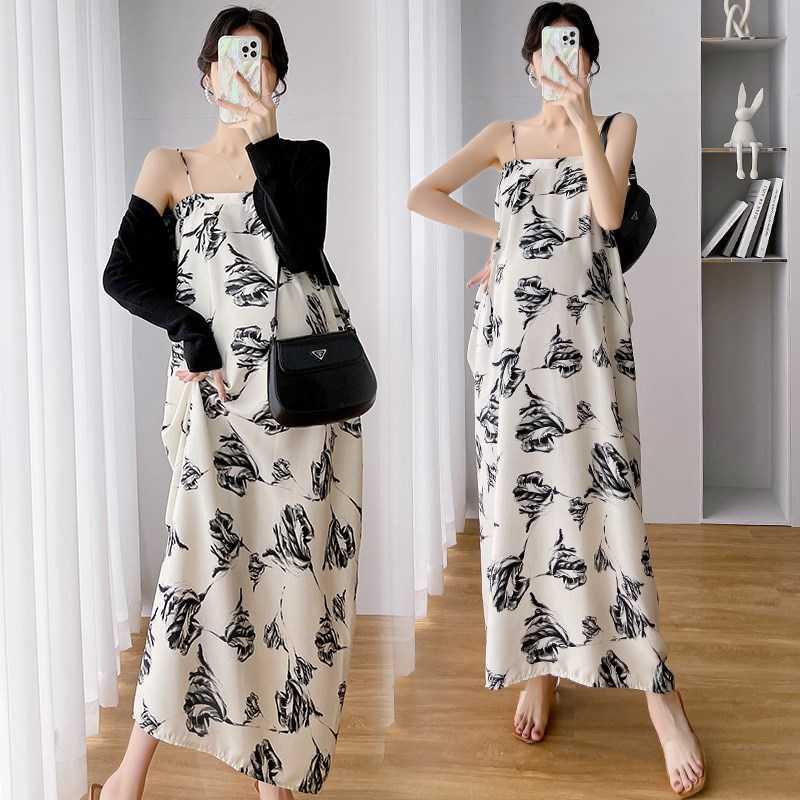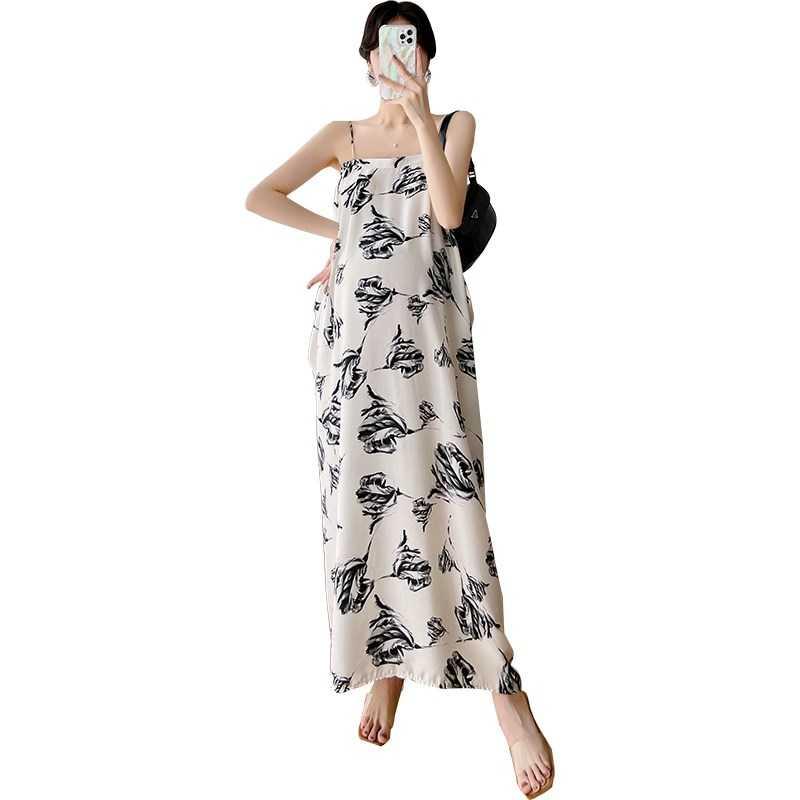 怪诞女孩 绝美度假氛围感长裙 海岛假日油画晕染网纱吊带连衣裙女