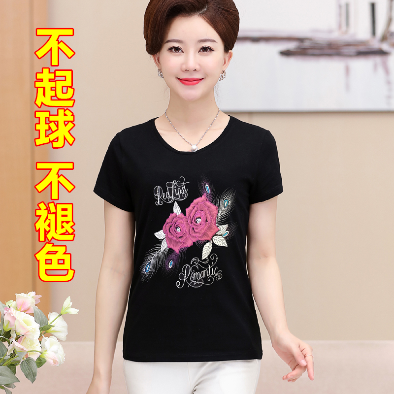 莫代尔短袖 宽松黑色半袖 T恤女中老年人薄款 大码 上衣 汗衫 妈妈夏装