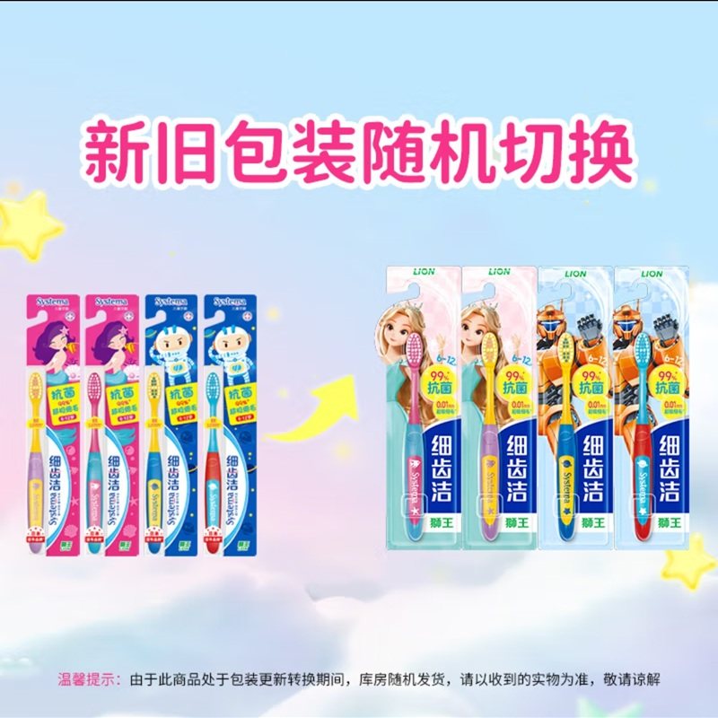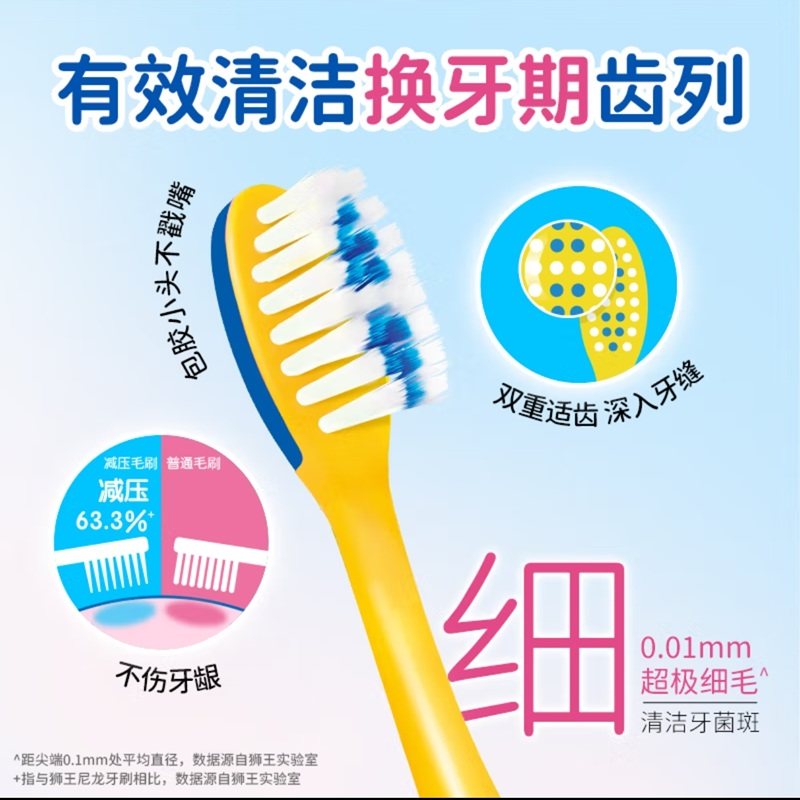 日本LION狮王细齿洁抗菌细毛软毛儿童牙刷6 家用 12岁换牙期家庭装