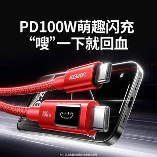 C数据线适用于iPhone17 绿联机器人屏显PD100W快充双Type 16手机平板笔记本充电线超级快充 易烊千玺同款