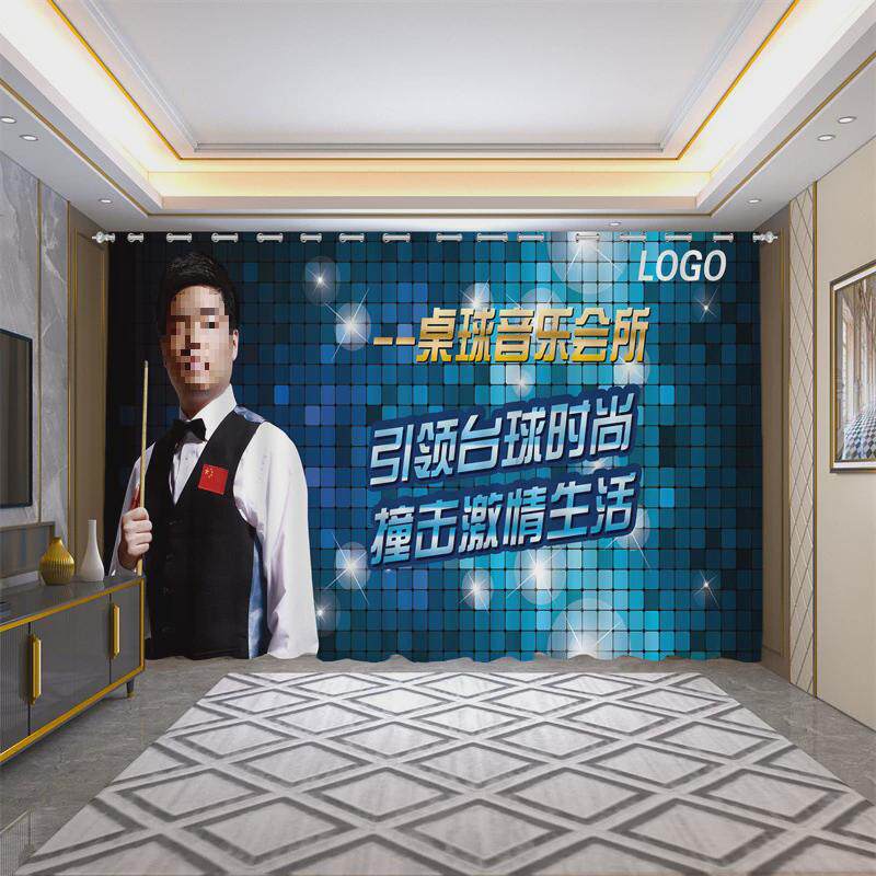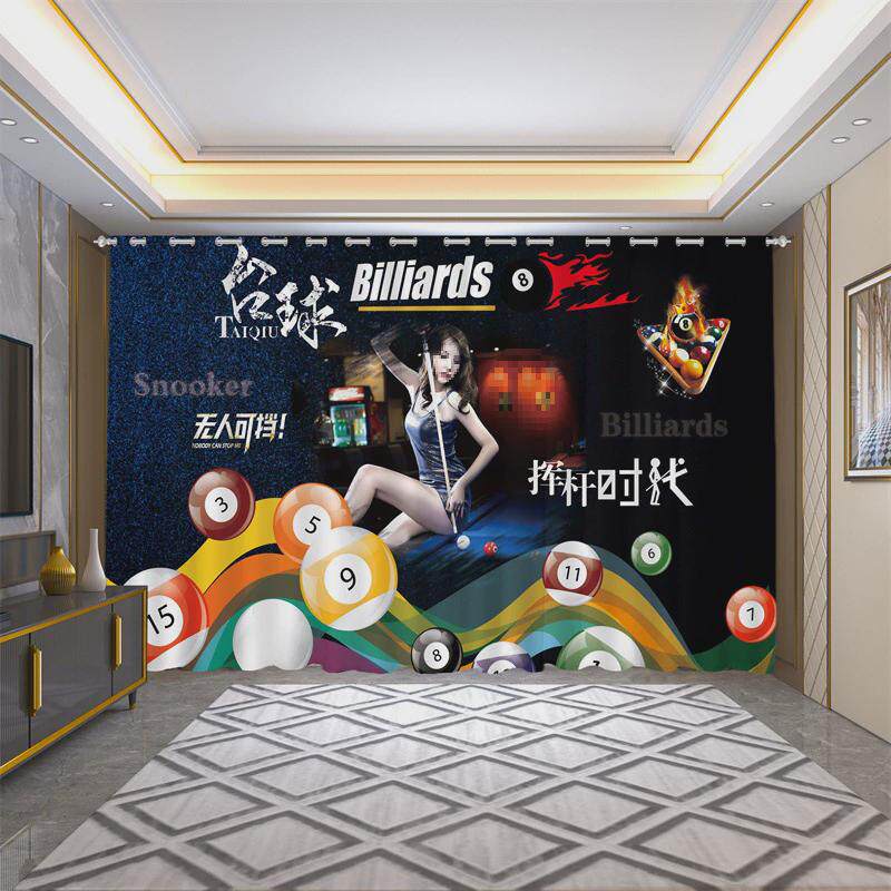 来图台球室隔断帘桌球台球厅新款 背景窗帘遮光2023俱乐部