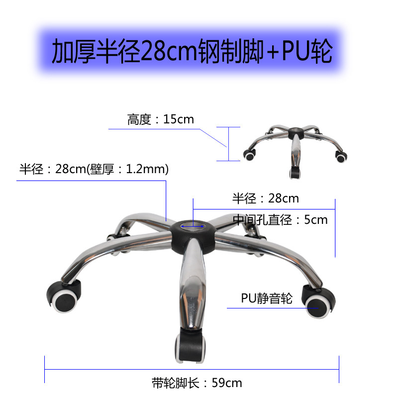 新款 转椅配件加厚椅子脚底盘电镀五星脚架电脑椅底座钢制耐用 包邮