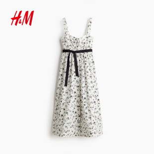 HM女装 小碎花连衣裙腰部系带连衣裙吊带长裙1282018 连衣裙夏季