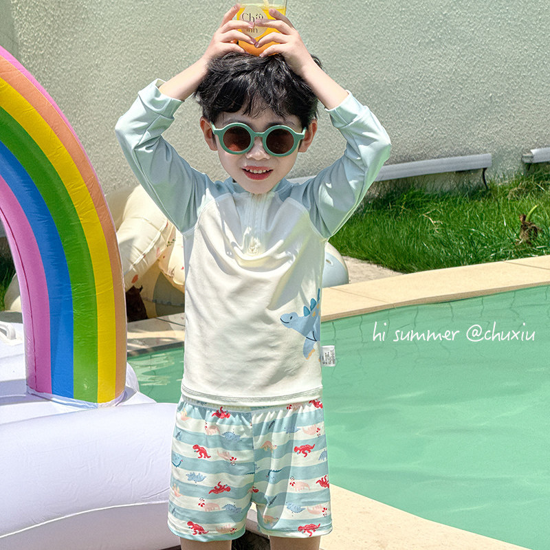 防晒专业游泳衣中大童男孩速干学生泳裤 新款 儿童泳衣男童分体长袖