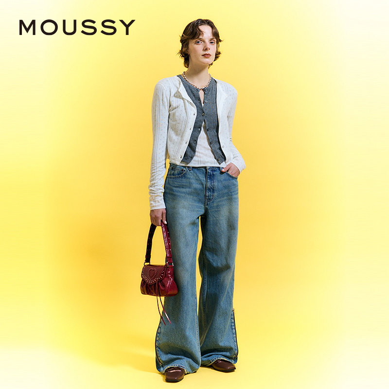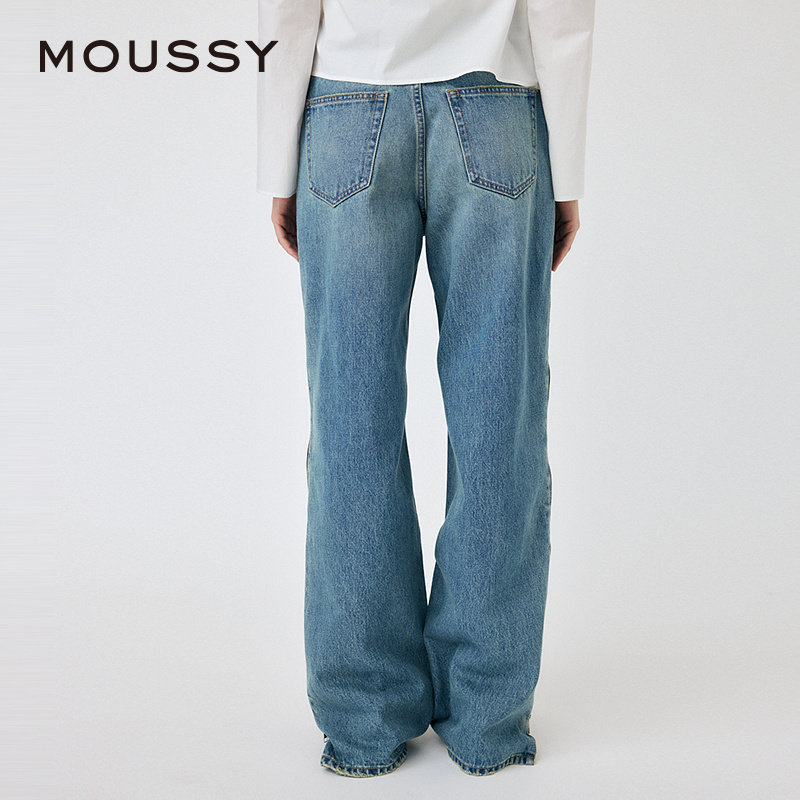 女010IS711 MOUSSY 低腰侧缝拉链拼接直筒牛仔裤 新品 0211 春季