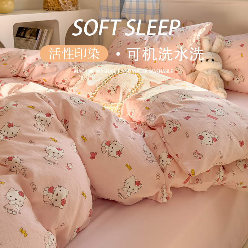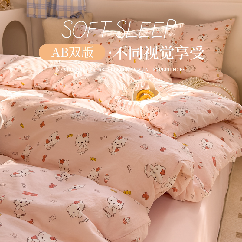可爱KT猫被套单件儿童单独非全棉纯棉被罩150x200x230被单四件套4