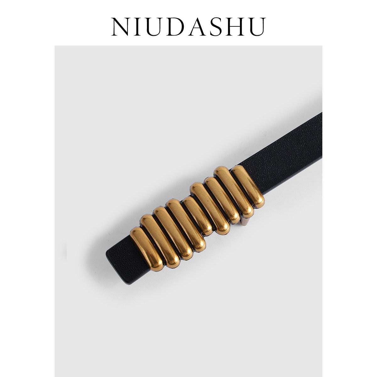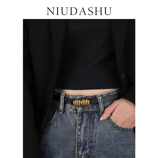 裙子腰带女黑潮 小众平滑扣细配牛仔裤 皮带女真皮装 饰简约百搭韩版