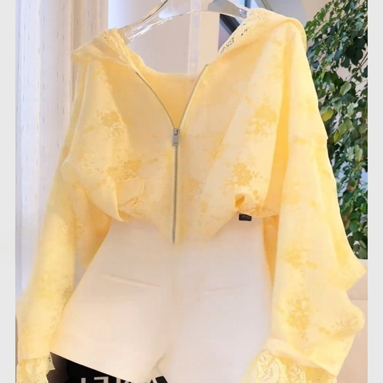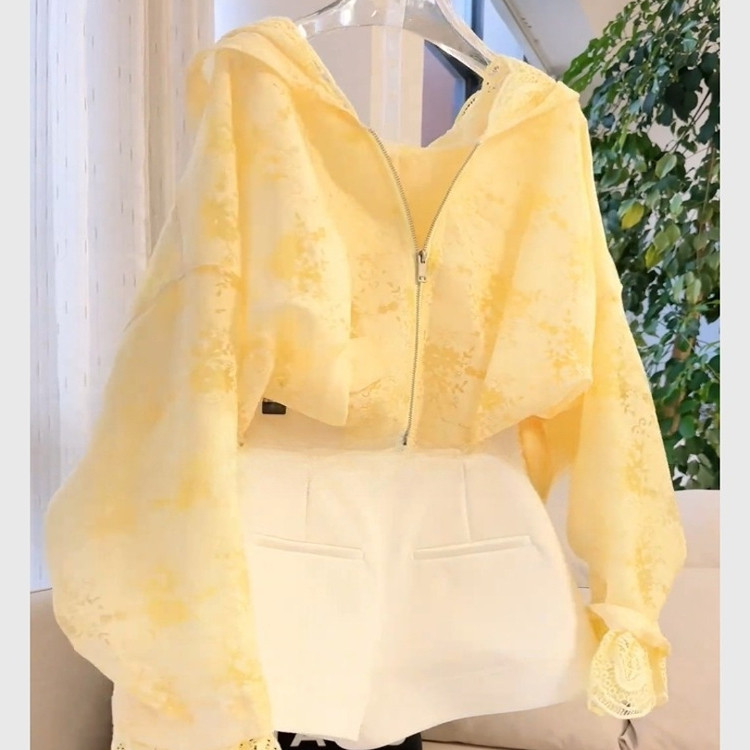 专柜撤回2025新款 休闲慵懒风独特夏日多巴胺穿搭黄色防晒外套 女装