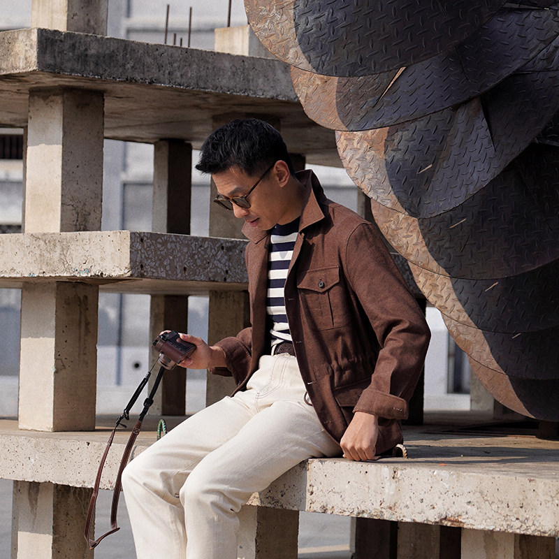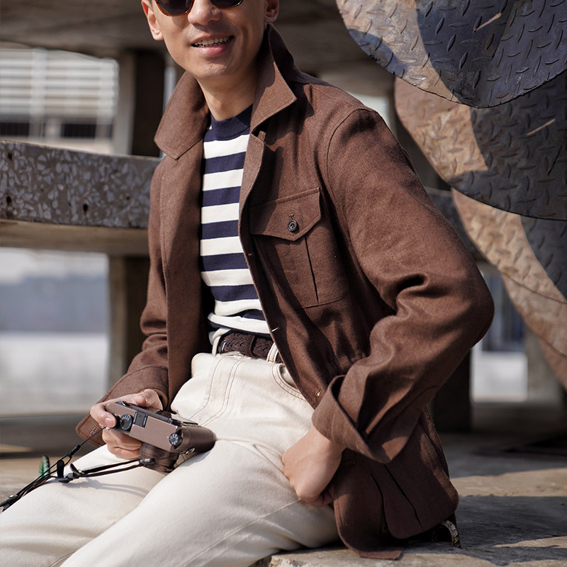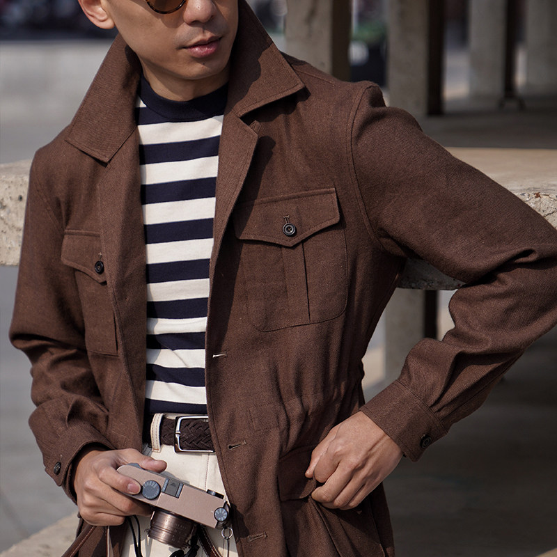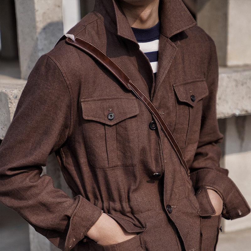CM那不勒斯皇后棕咖色毛麻混纺牛仔单宁工装 Safari夹克114 猎装
