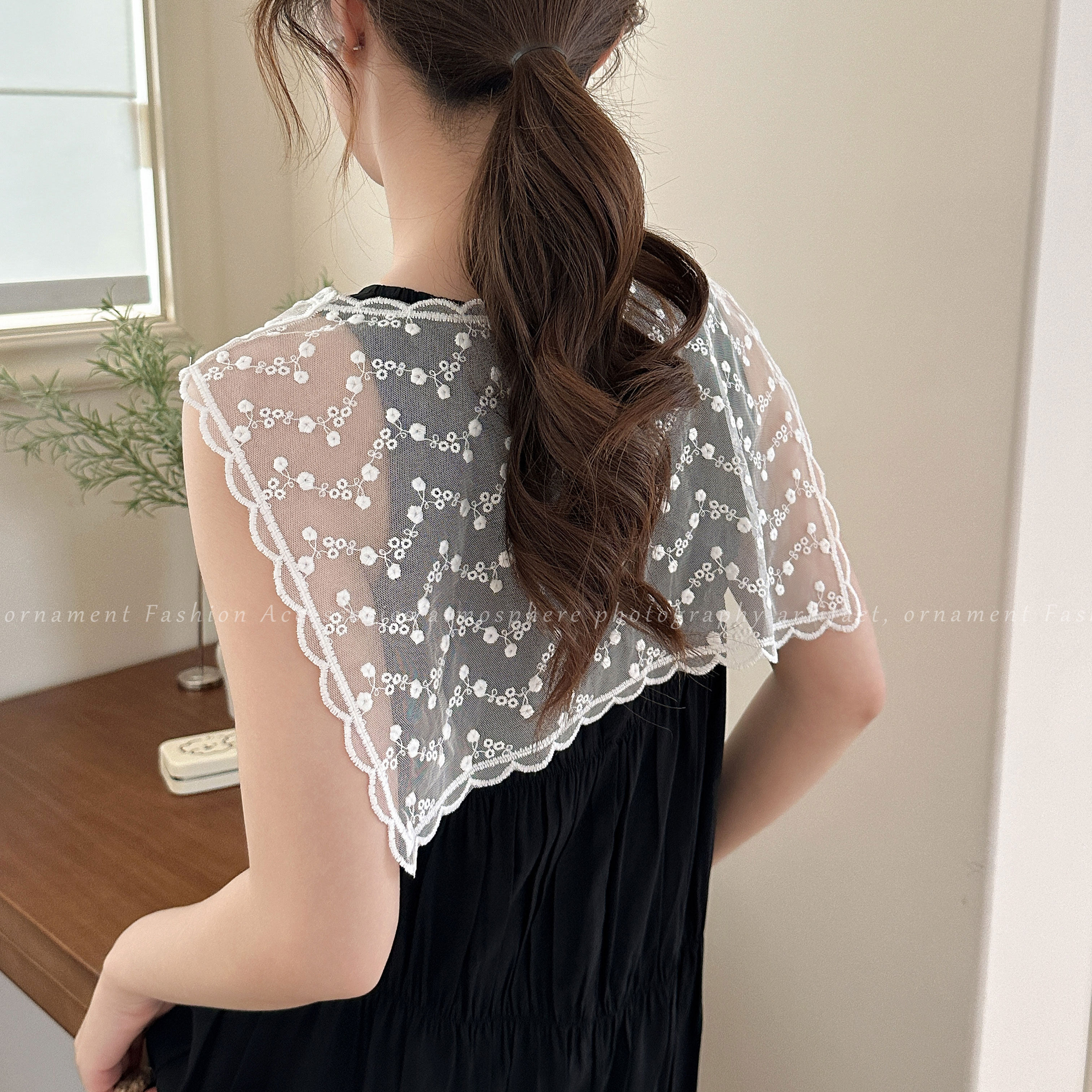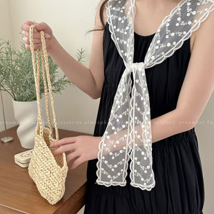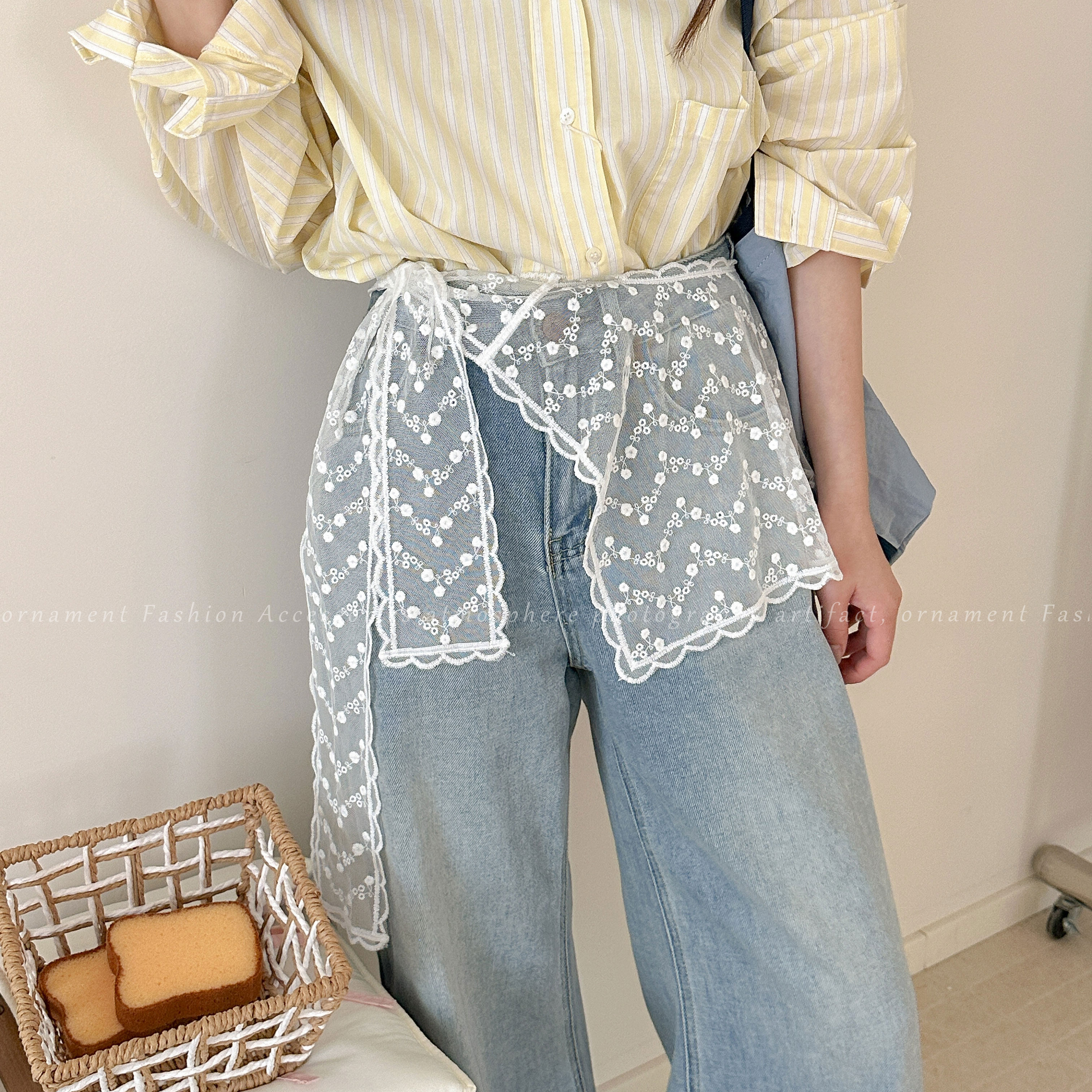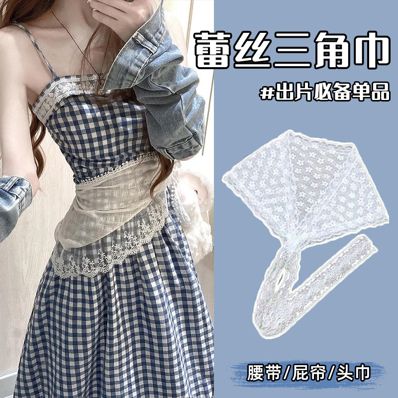 叠穿蕾丝裙帘白色网纱屁帘连衣裙牛仔裤 屁帘多功能披肩三角巾丝带