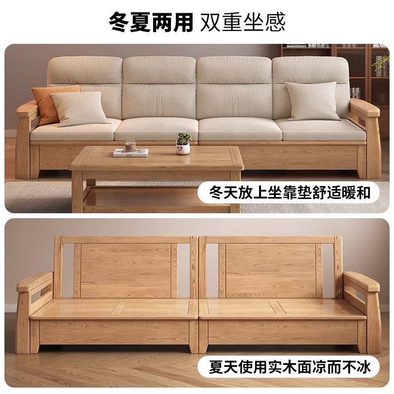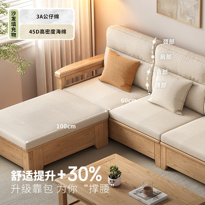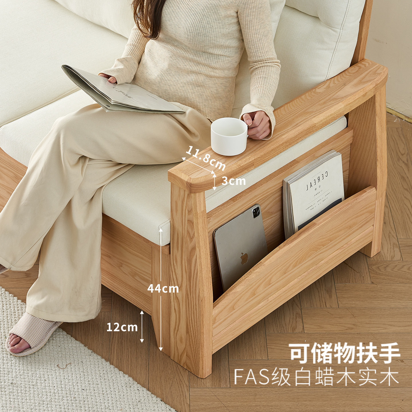 一林半舍白蜡木全实木沙发小户型客厅北欧日式 原木风布艺直排储物