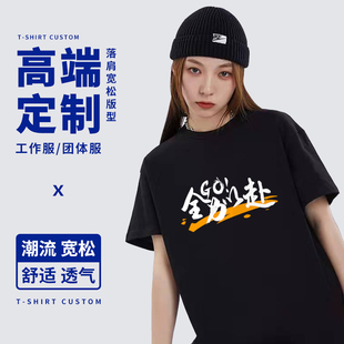 宽松团体衣服文化衫 高端定制t恤印字logo纯棉短袖 工作服定做中袖