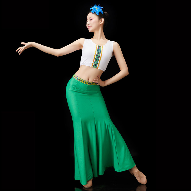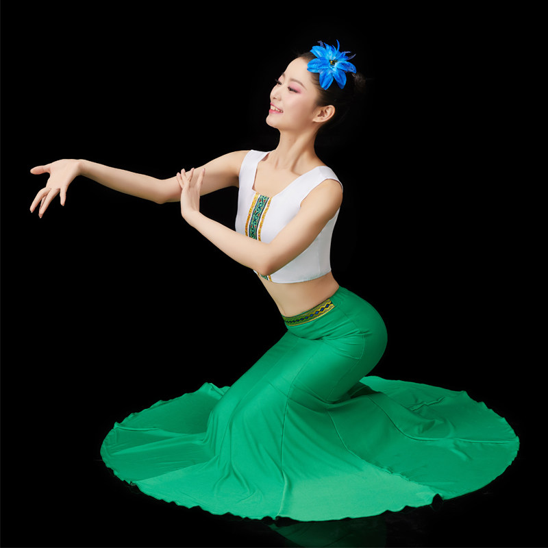 女舞裙童舞鱼尾裙艺考服装 傣族舞蹈儿演出服装 表演服傣族花腰服装