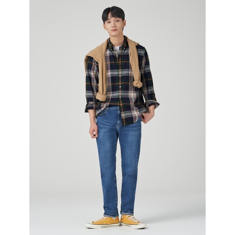 双色水洗磨毛长袖 几立 牛仔衬衫 夕阳倒映在蓝色天际