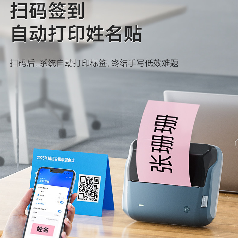 精臣B31 B4标签打印机小型不干胶桌牌桌签打印机席位姓名贴纸会议用品座位牌台卡胸牌彩色智能热敏名片打印机