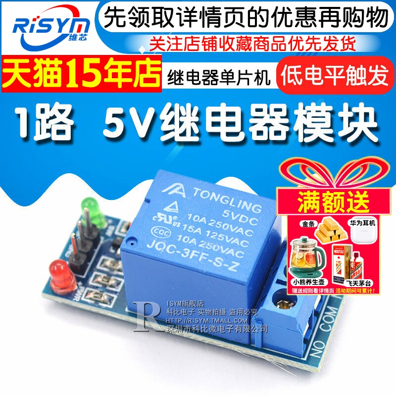 继电器单片机扩展板开发板 5V继电器模块 低电平触发 1路 Risym
