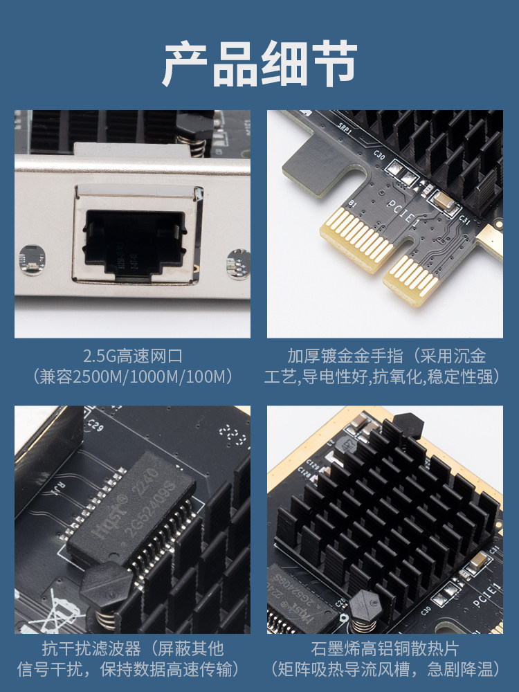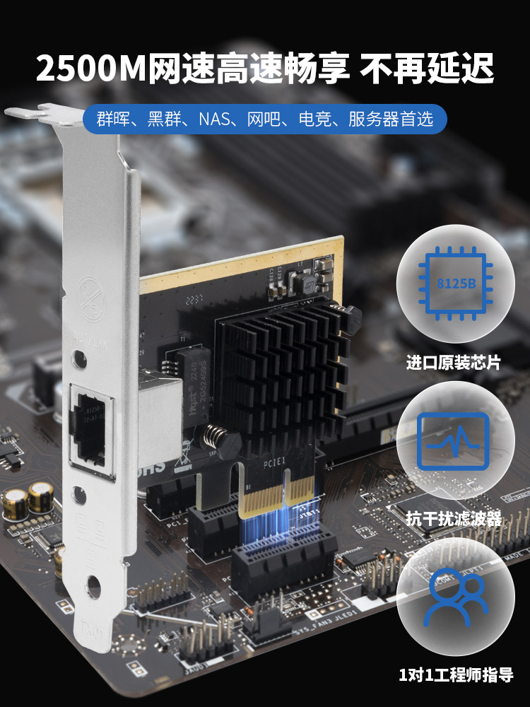 游梵PCIE转2.5G千兆网卡无盘网卡电竞游戏有线网口2.5G电竞无盘网卡支持ROS群辉ESXi无盘PXE启动pci e网卡