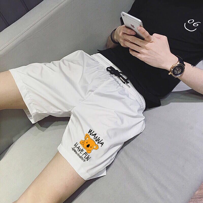 潮流速干情侣三分裤 精神小伙痞帅3分短裤 弹力沙滩裤 男修身 衩 夏季