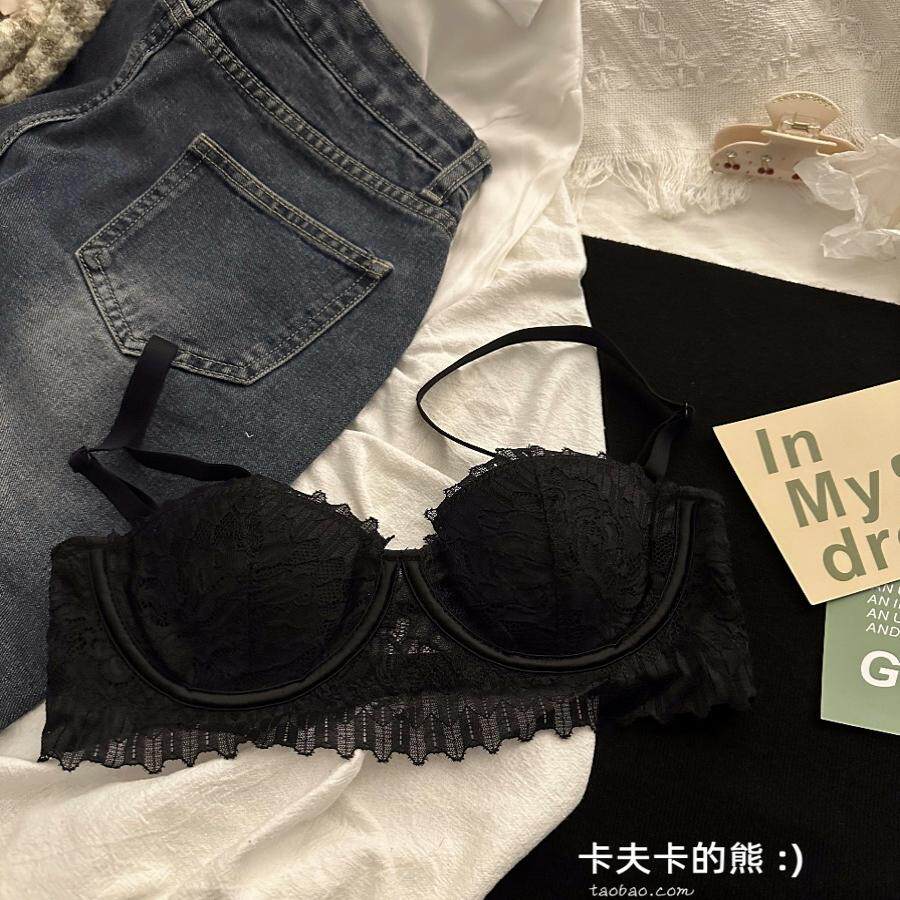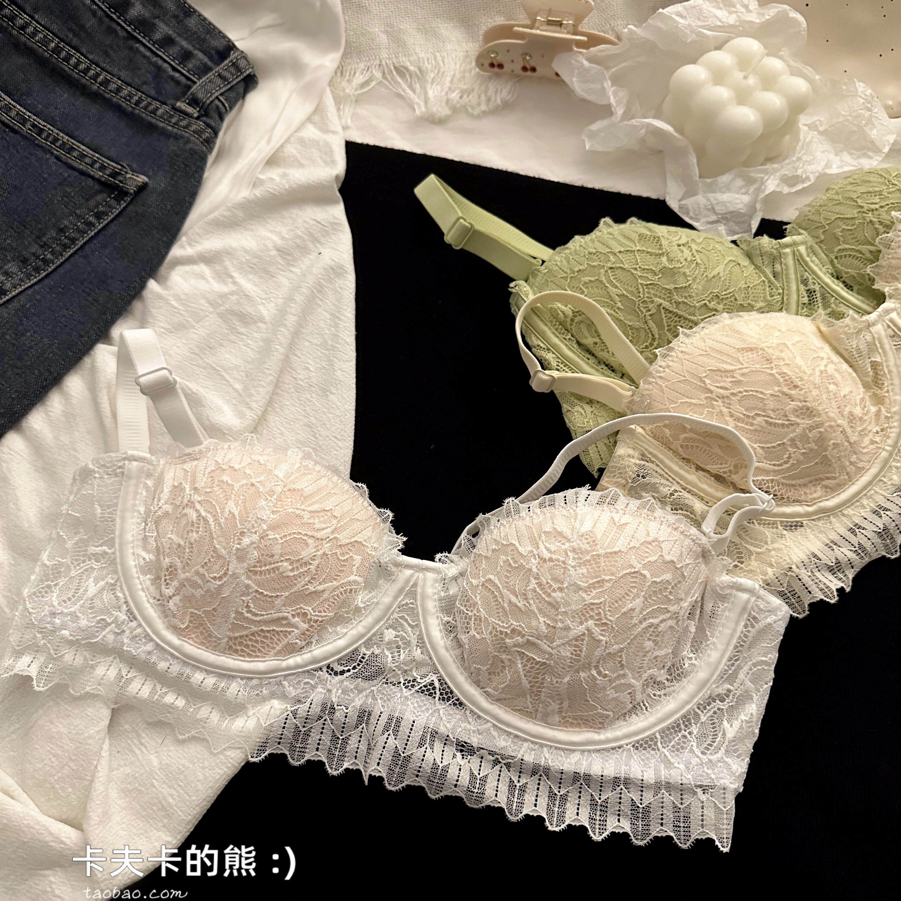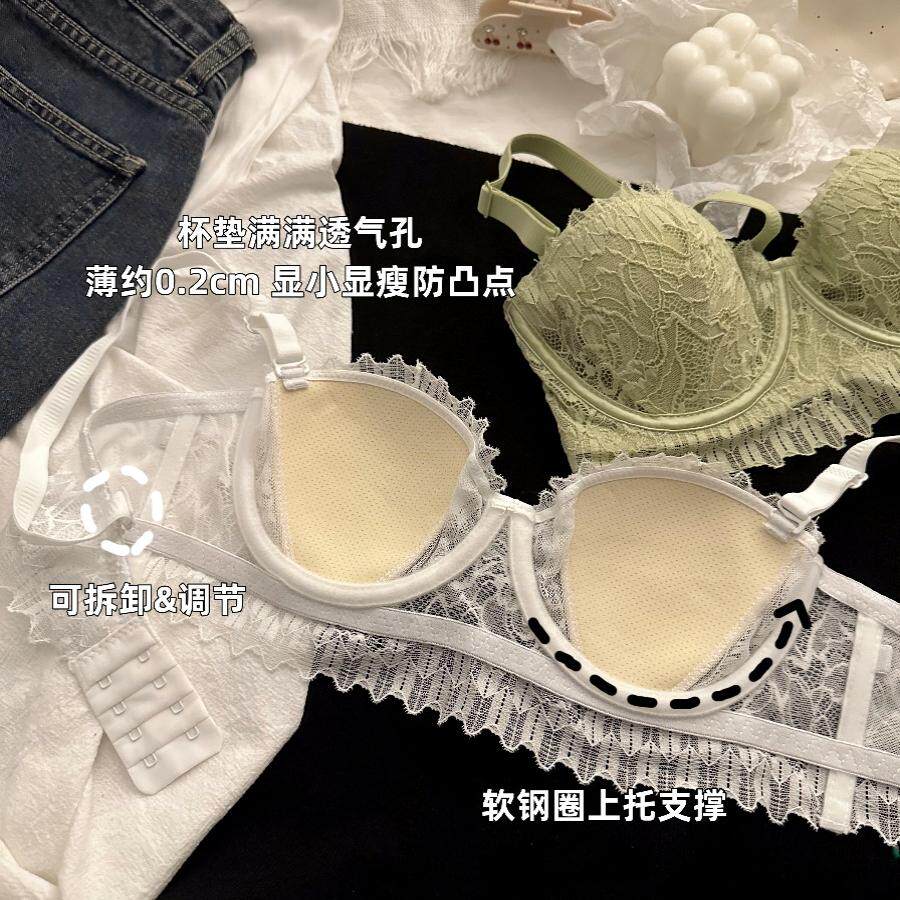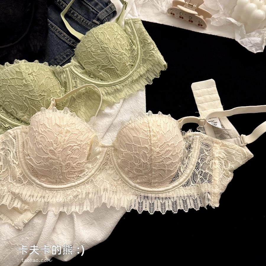 法式 蕾丝内衣少女大胸显小胸聚拢软钢圈防下垂兔耳朵性感文胸套装