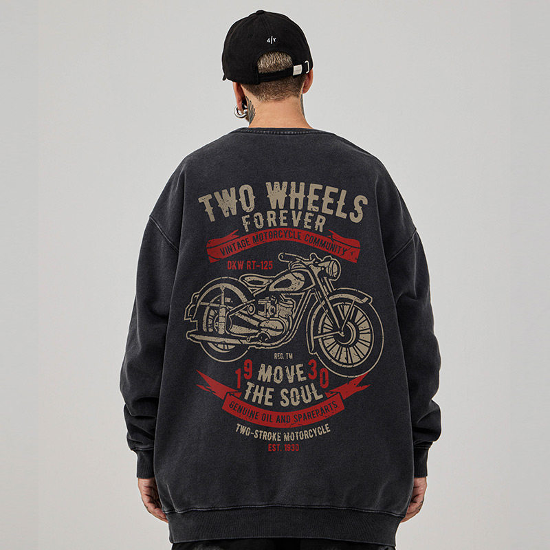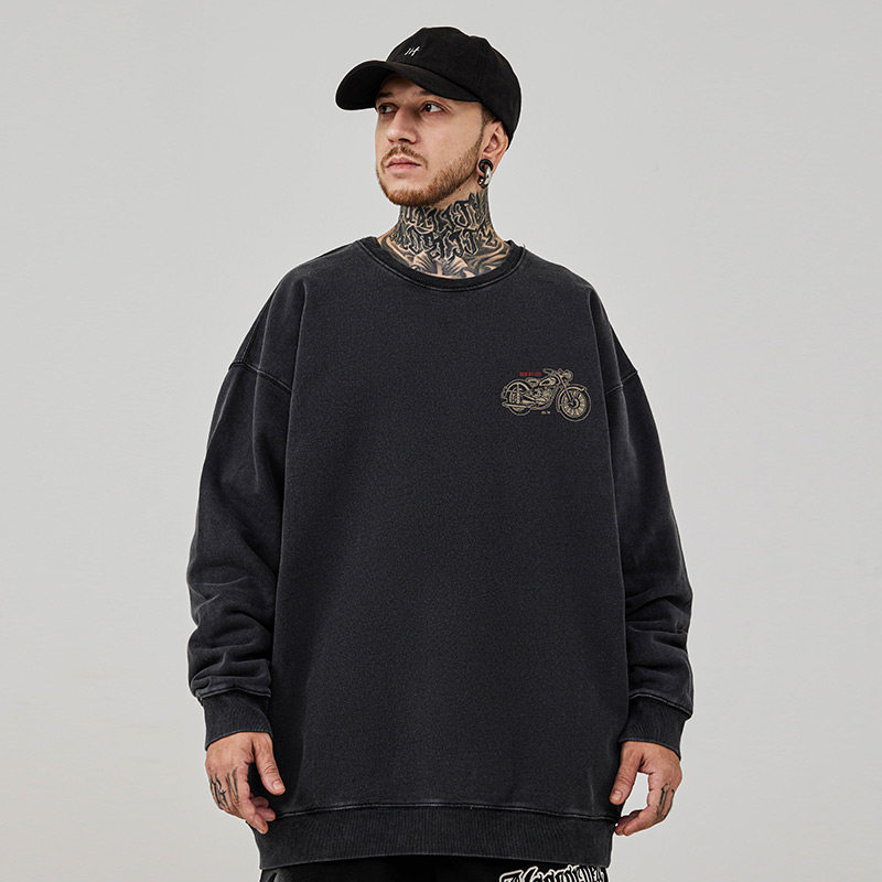 加绒宽松水洗做旧圆领卫衣春秋冬款 重磅复古胖子男装 无帽 美式 大码