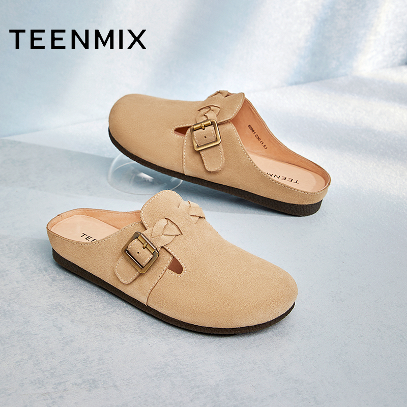 AMBSOM 一脚蹬半拖包头勃肯慵懒随意男女 高丝光反绒牛皮穆勒拖鞋