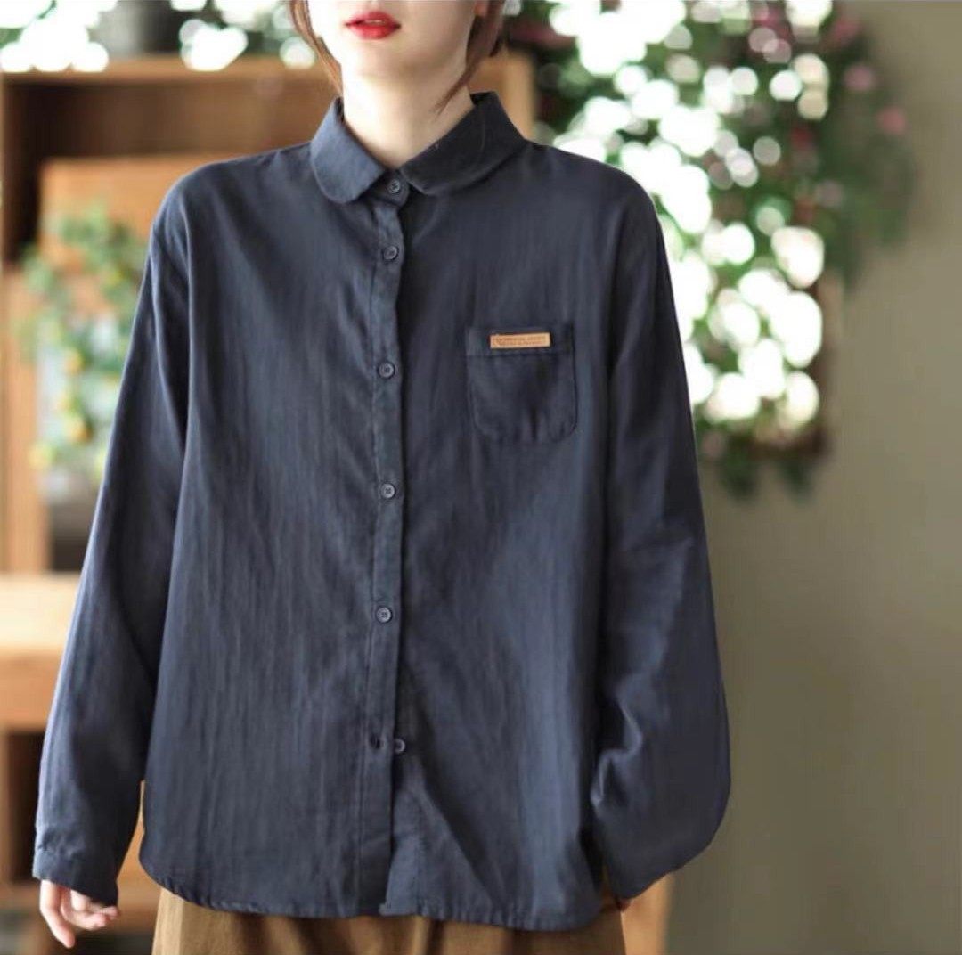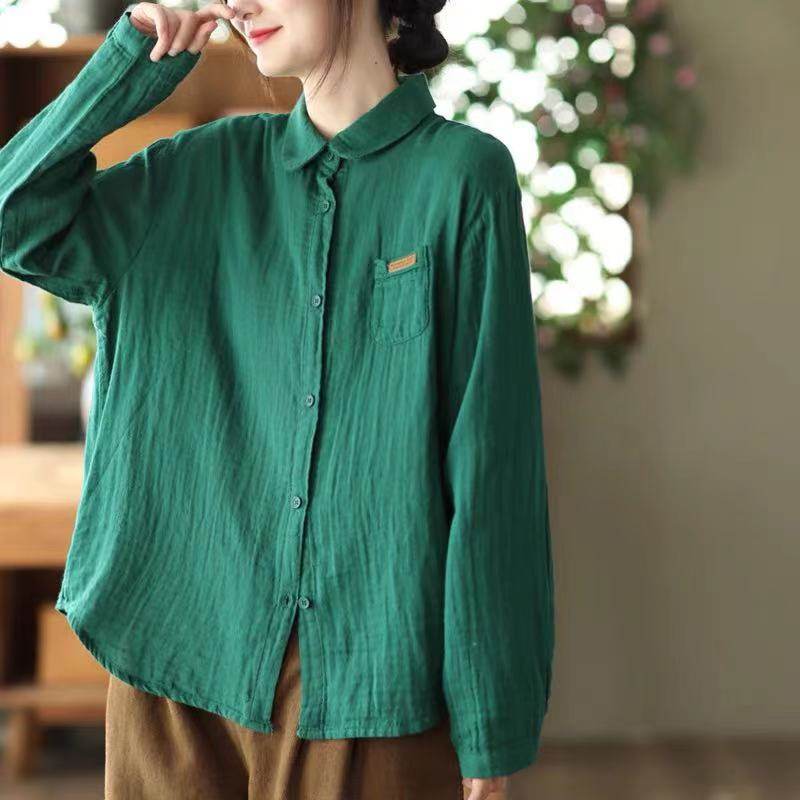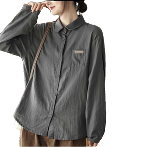 10906柔软双层纱纯棉衬衫 百搭打底纯棉纱衬衣上衣 单口袋皮标大码