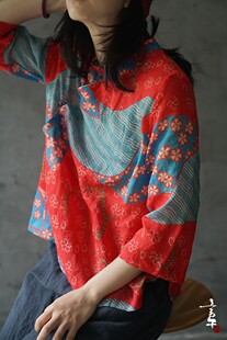 言午葵原创设计国风立领和风斜襟麻衬衫 春夏 复古民国茶服上衣短衫
