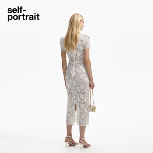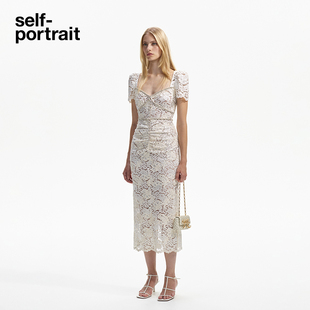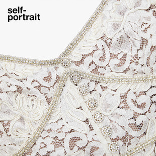 self 春夏象牙白方领钻饰气质蕾丝连衣裙中长裙 portrait