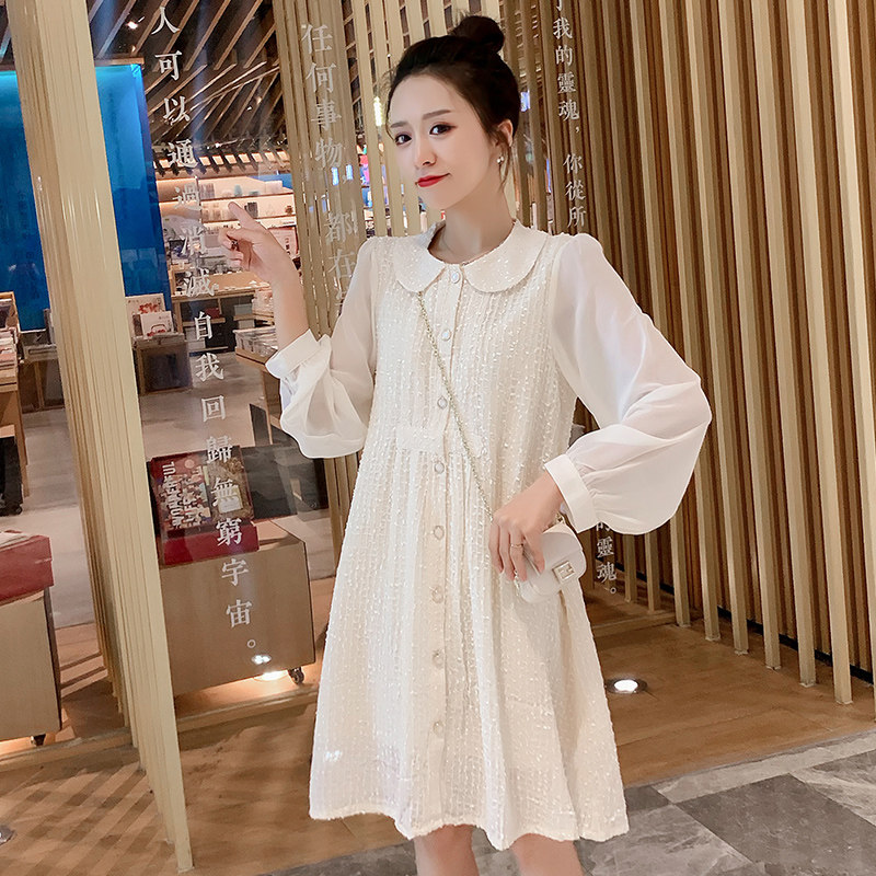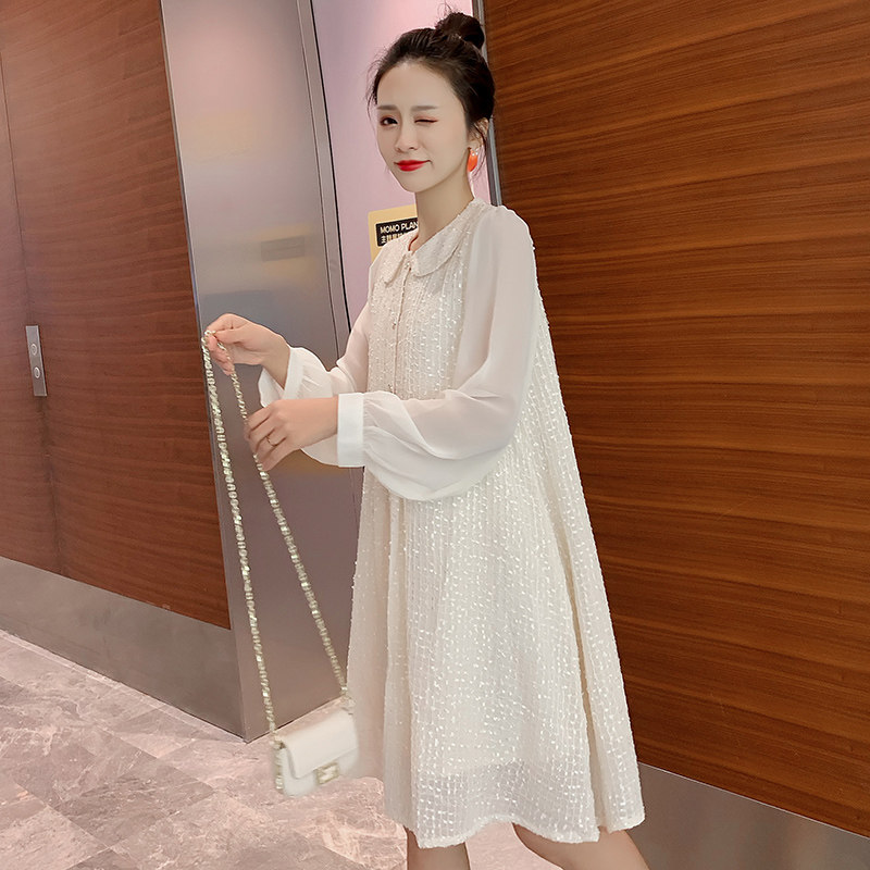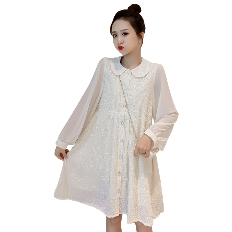 春装 裙子春季 时尚 雪纺连衣裙宽松衬衫 网红孕妇裙 娃娃领长袖 孕妇装