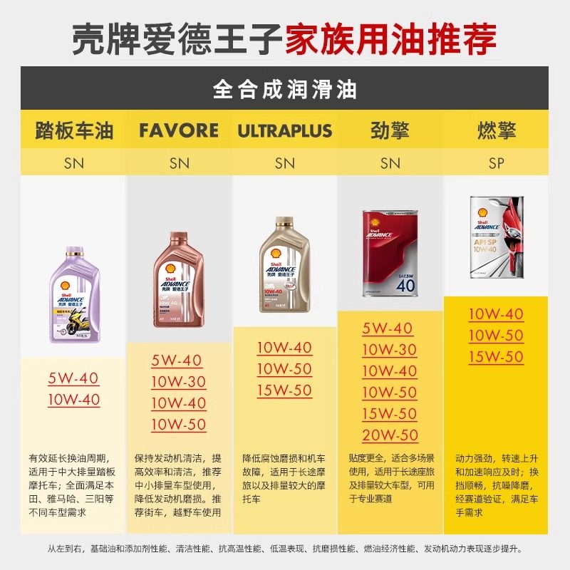 10W40 壳牌爱德王子踏板摩托车专用机油 MB全合成润滑油5W40