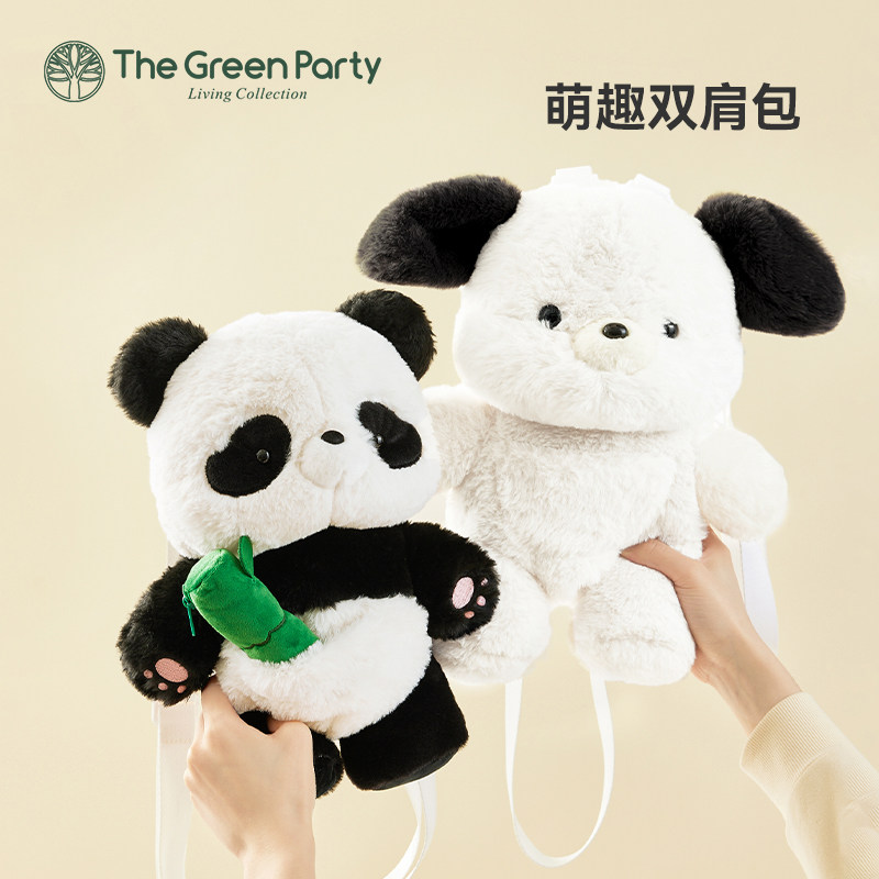 TheGreenParty萌趣动物双肩背包包女玩偶可爱狗狗熊猫毛绒公仔包