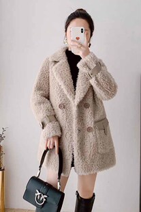 皮草羊羔毛大衣外套女皮毛一体羊剪绒中长款 秋冬加厚保暖上衣外套