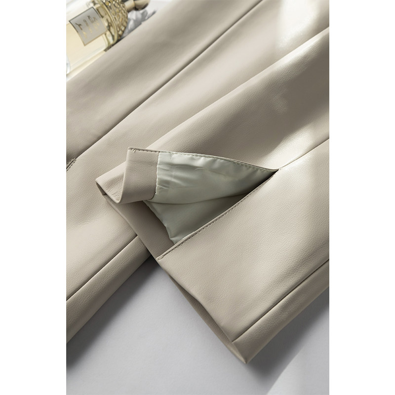 绵羊皮皮裤 九分休闲裤 真皮皮裤 裤 高腰简约西装 欧洲站2025秋冬新款