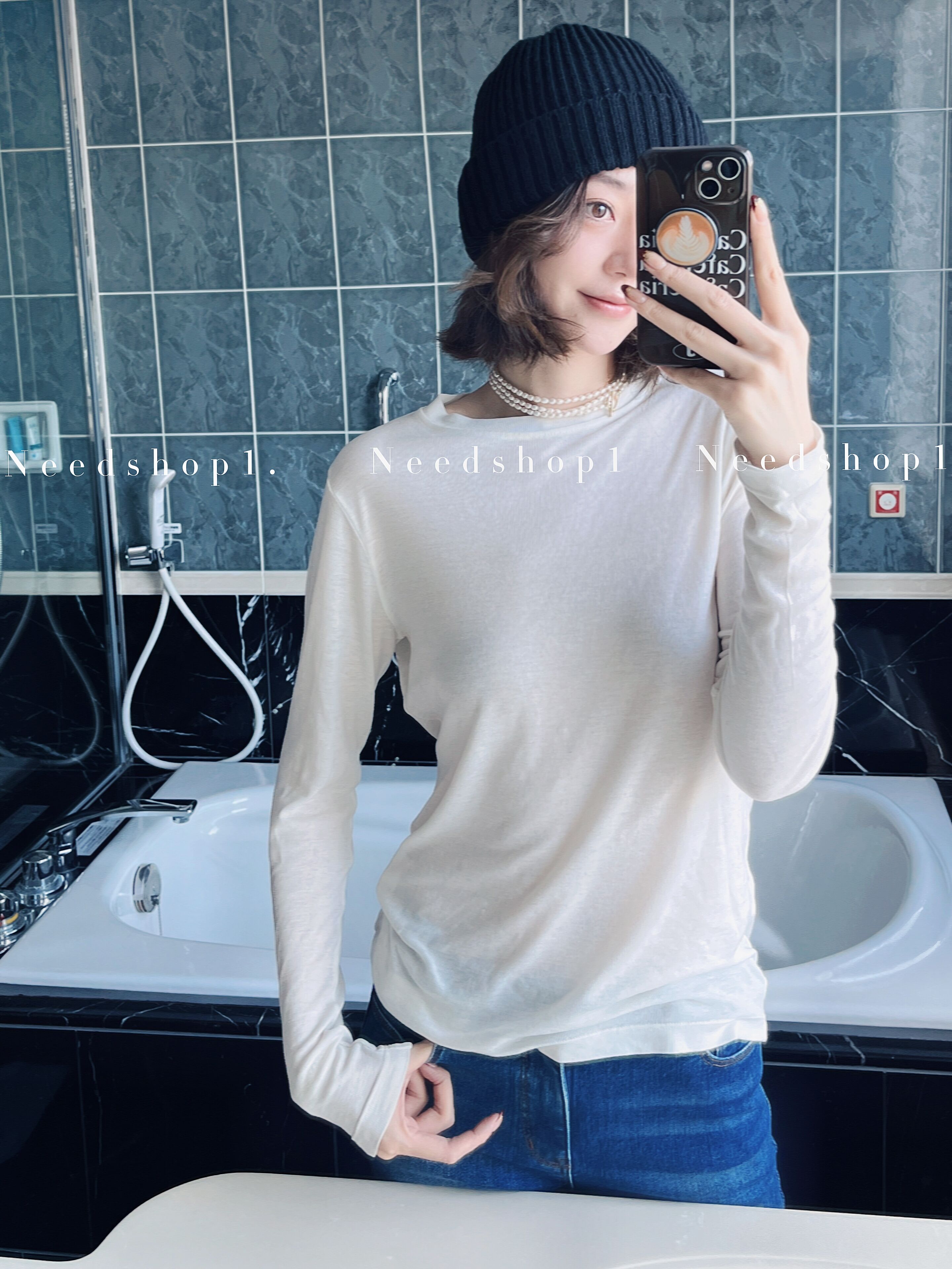 打底衫 NeedShop12024春季 基础款 白色圆领简约百搭T恤针织衫 新款