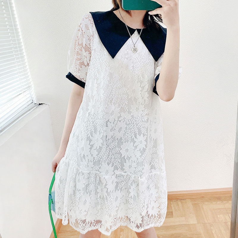 甜美气质宽松连衣裙517 时尚 网红新款 酷伽蕾丝裙子女夏季