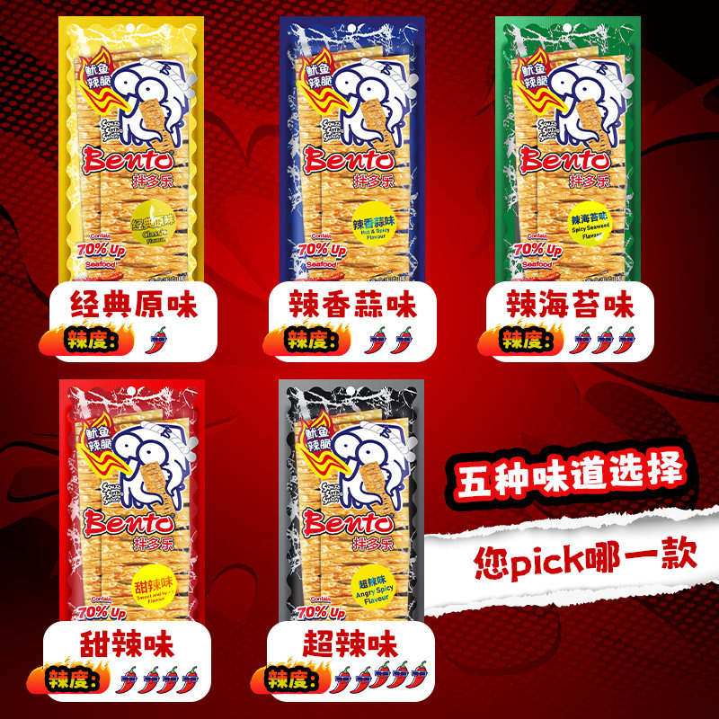泰国进口Bento拌多乐鱿鱼海鲜零食辣味手撕鱿鱼片休闲小吃20gx9包