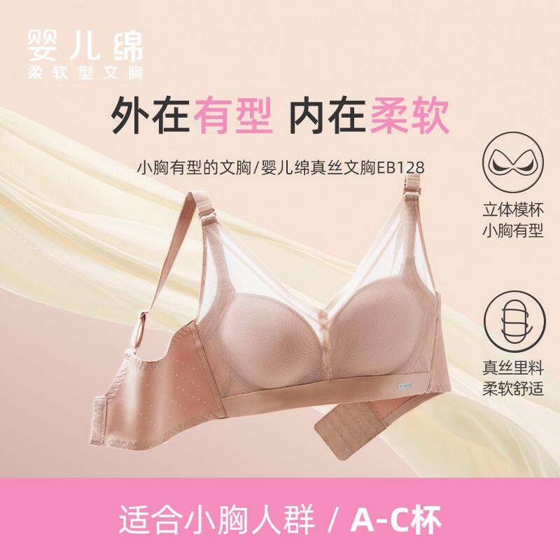 红豆专柜同款 100%桑蚕丝里料无钢圈无痕立体聚拢收副乳真丝文胸