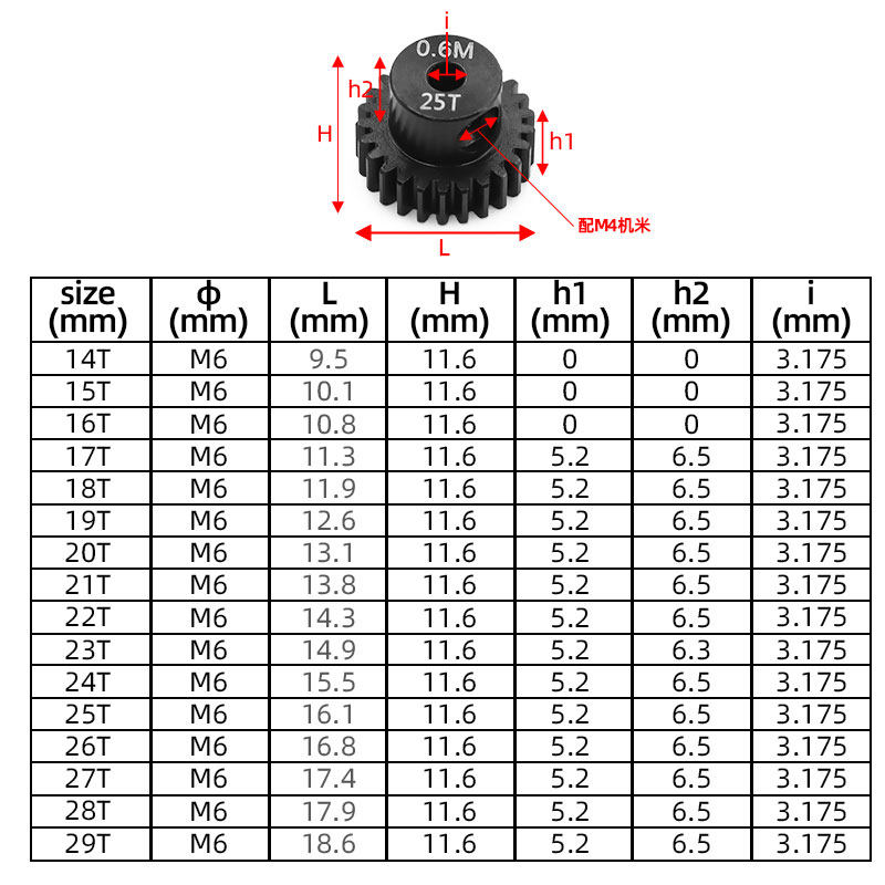 齿轮3.175齿孔RZ022 美嘉欣改装 田宫 RC配件0.6M钢制马达齿电机齿