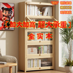 实木格子柜八格柜书架落地置物架儿童收纳储物矮柜子靠墙展示书柜