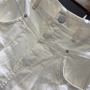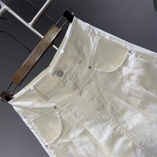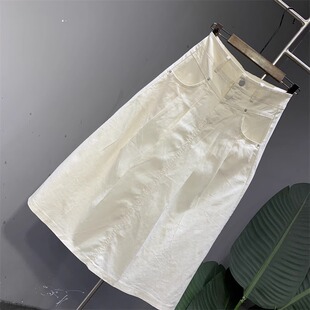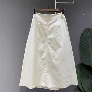 A字伞裙高腰压皱半身裙女 百搭遮垮中长款 米白色新款 时尚