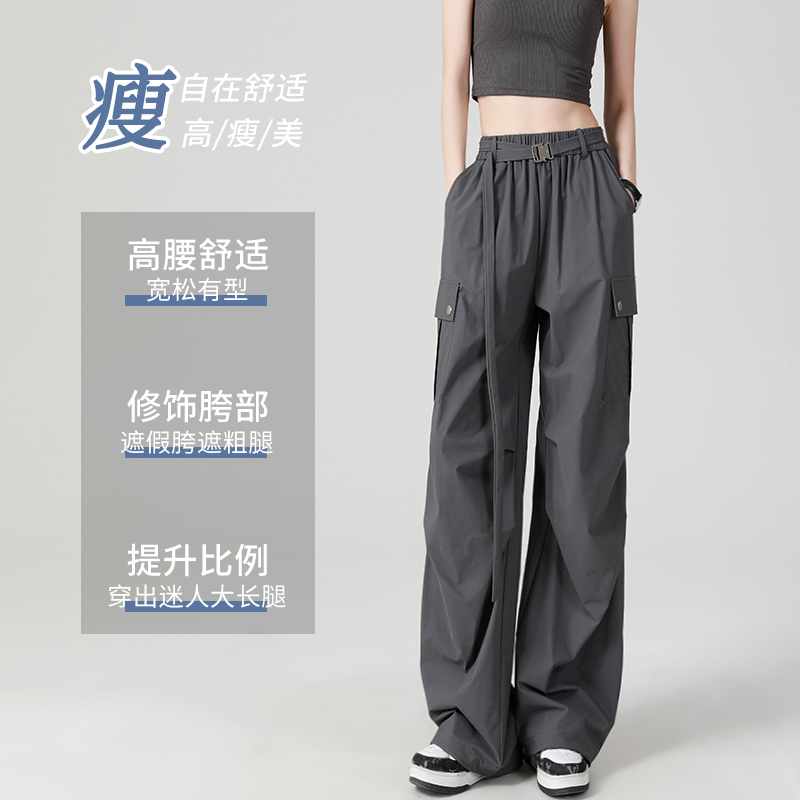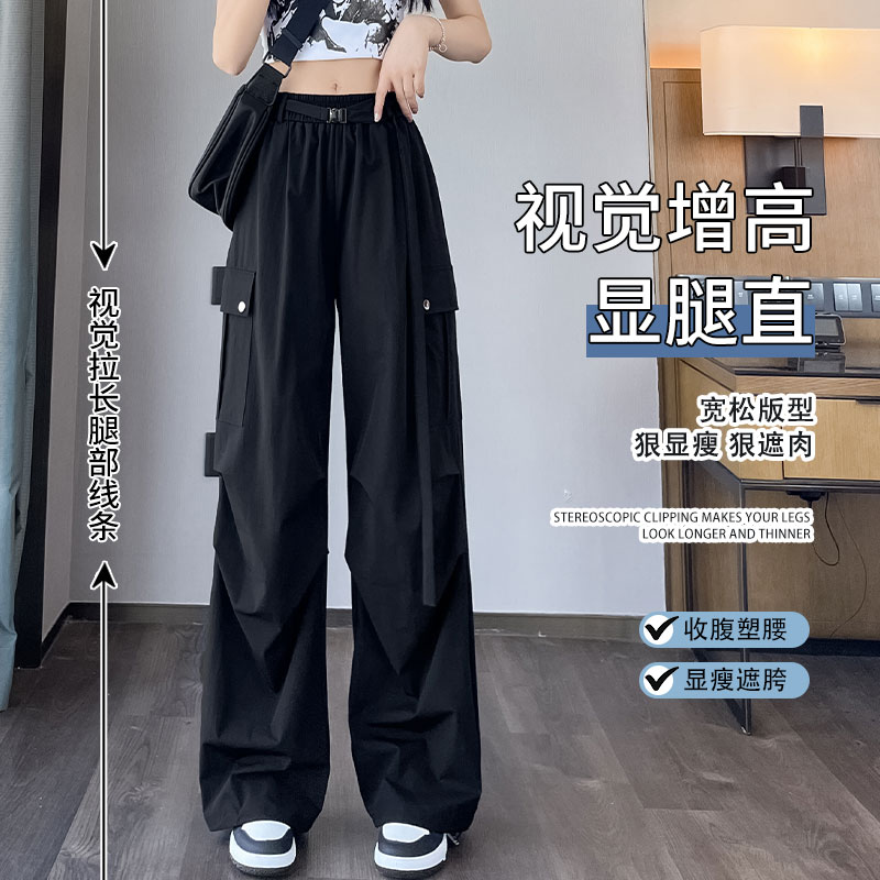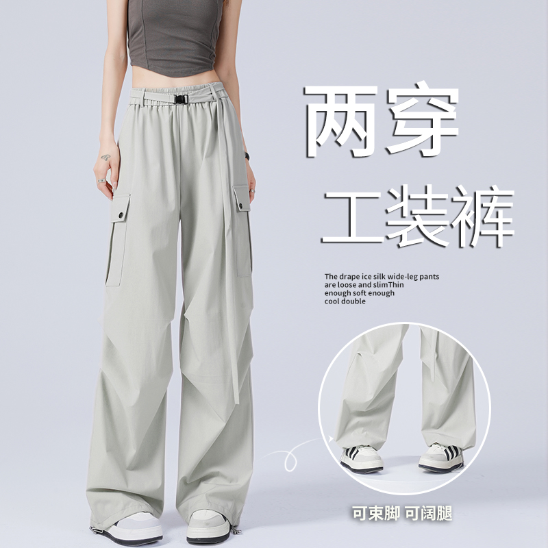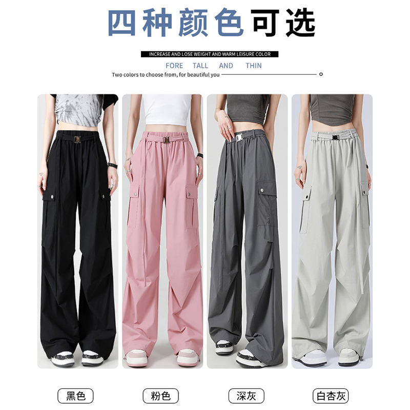 速干休闲束脚伞兵运动春秋登山阔腿裤 粉色工装 薄款 女夏季 子女 裤