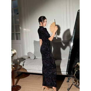 长袖 凌茜新中式 加厚改良年轻款 2025新款 连衣裙 紫色丝绒旗袍冬装
