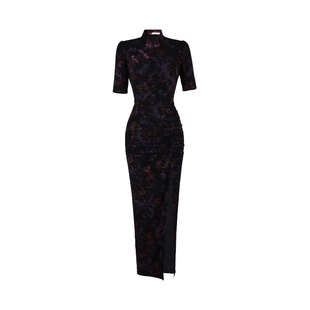 高领无袖 复古印花修身 连衣裙小众旗袍鱼尾长裙 新中式 SEEYOULATER