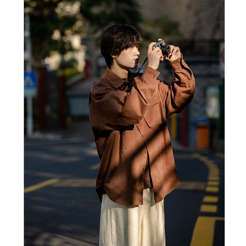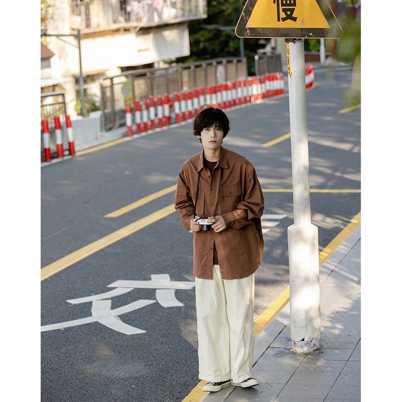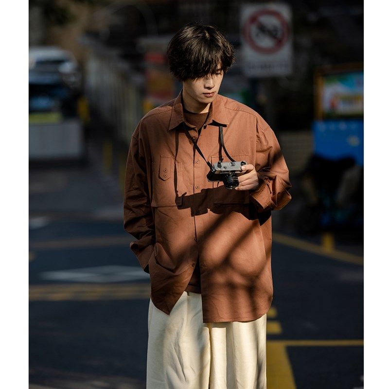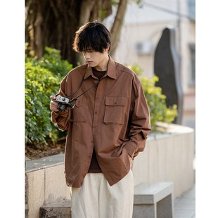 男生2022宽松口袋衬衣外套 休闲衬衫 南鹤春季 日系复古弧形下摆工装