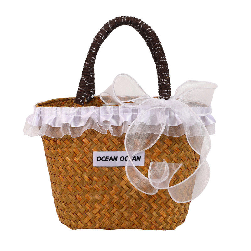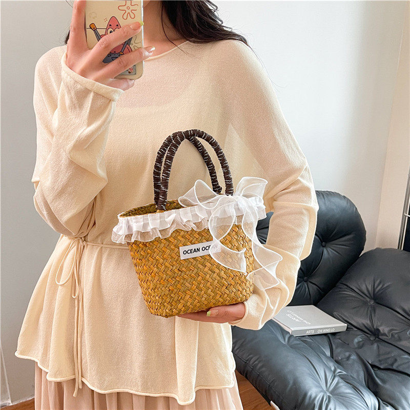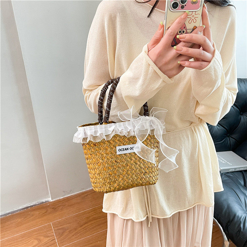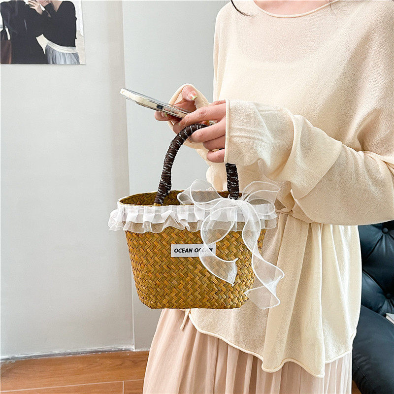 网红泰国草编小包包女超火时尚 芭蕾风草编包海边度假手提沙滩包