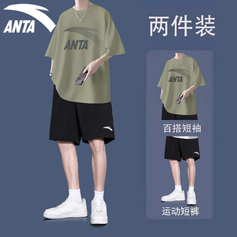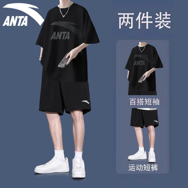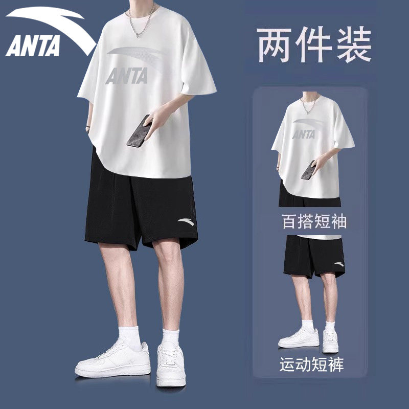 T恤五分裤 男短袖 潮流两件套学生宽松运动搭配一整套 套装 安踏夏季