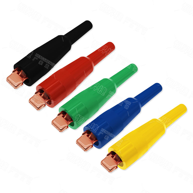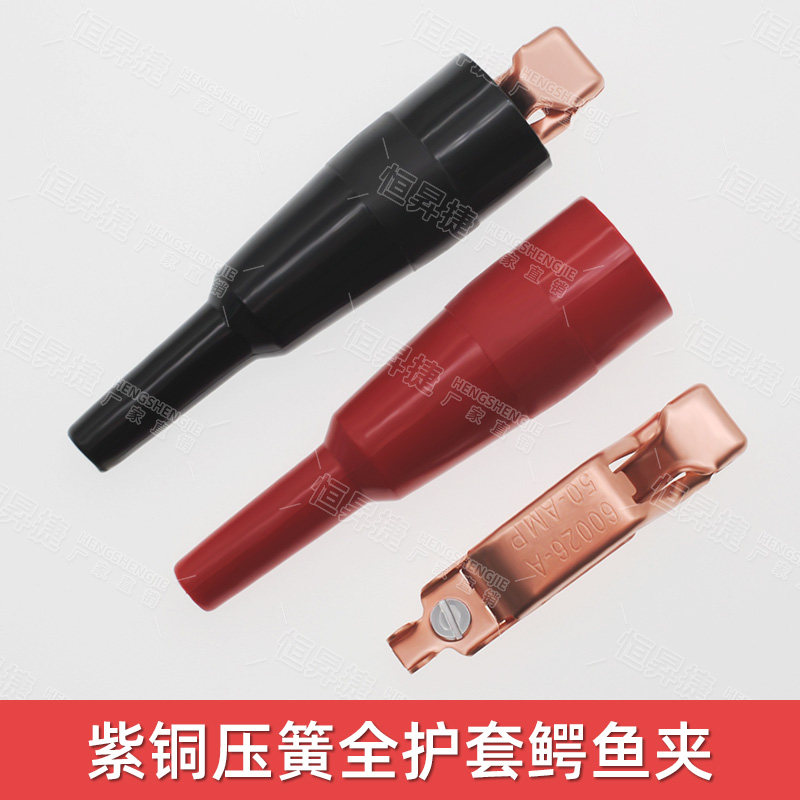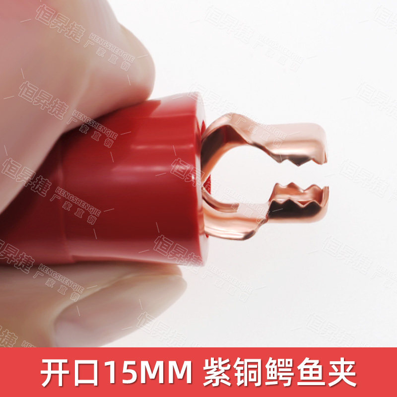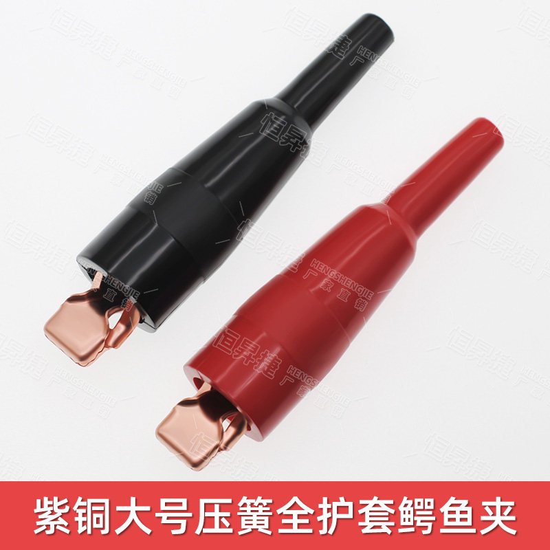 纯铜40A鳄鱼夹镀紫铜弹簧夹 带齿扁平口电工大电流绝缘护套测试夹